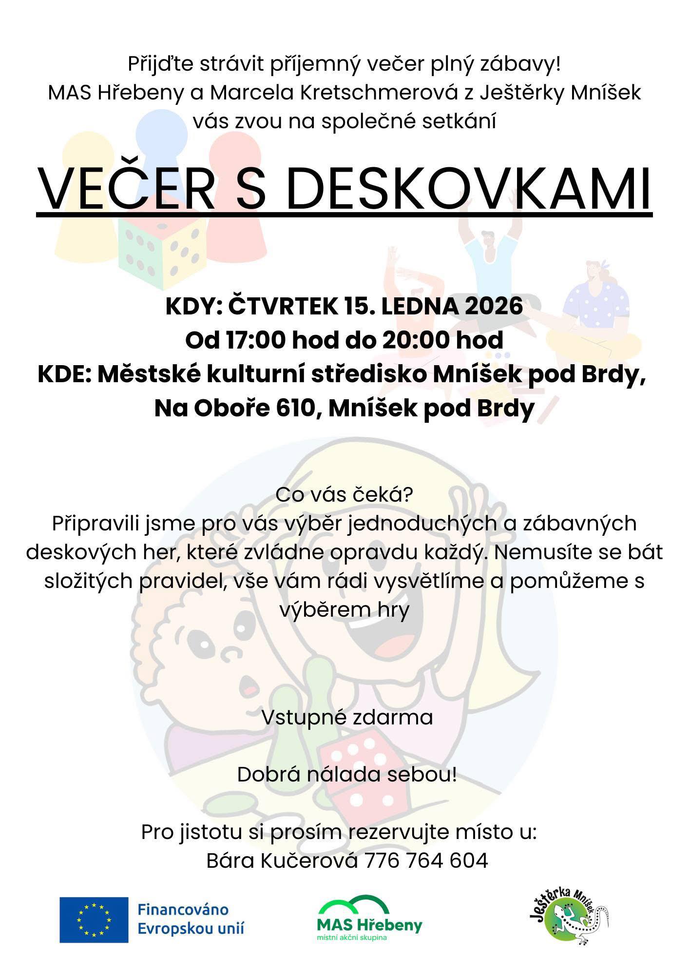 Zítra večer vás zveme na příjemné posezení u deskových her. Přijďte si zahrát, pobavit se a strávit čas v dobré společnosti. Dobrá nálada zajištěna, stačí dorazit.