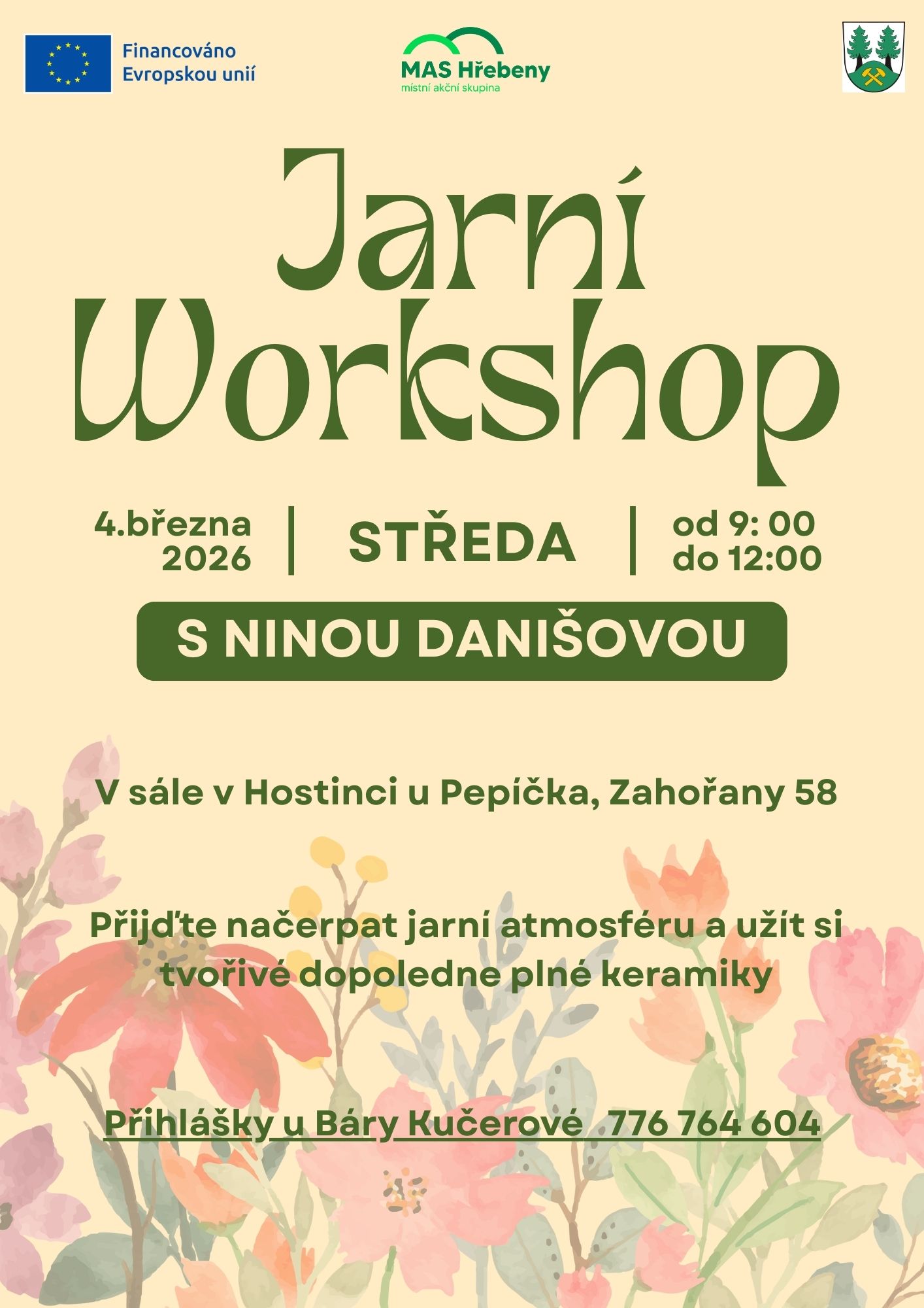 Obec Zahořany ve spolupráci s MAS Hřebeny z.s., Vás srdečně zve na JARNÍ WORKSHOP S NINOU DANIŠOVOU.